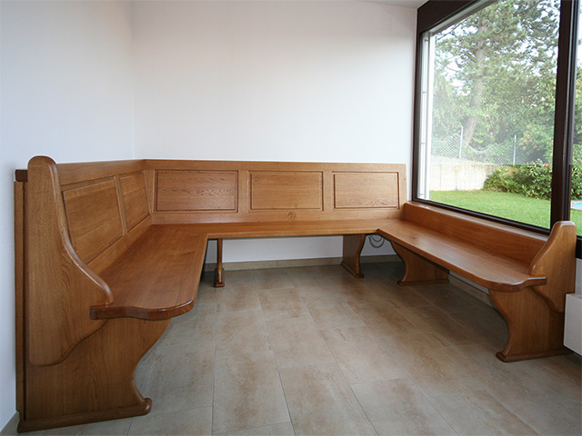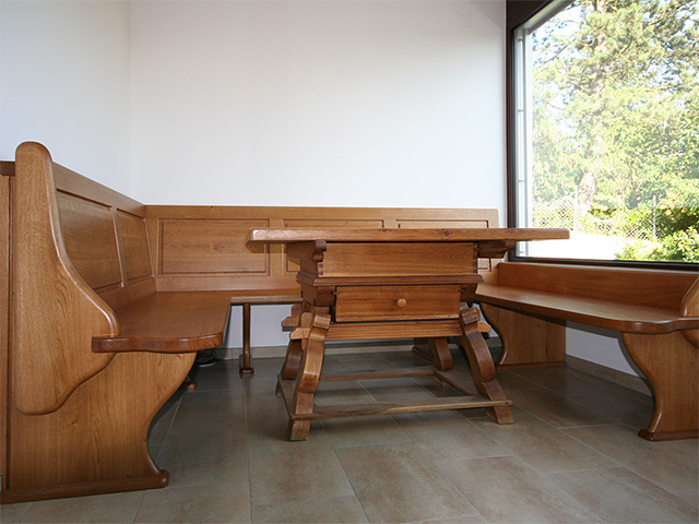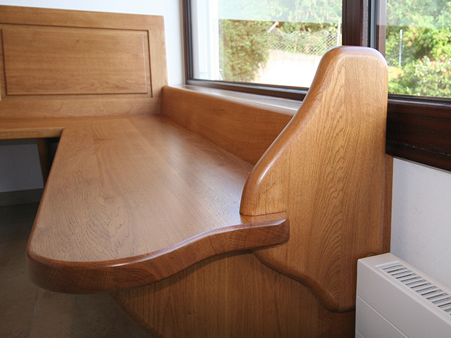 Auf Kundenwunsch wurde hier eine Eckbank zum vorhandenen Tisch gefertigt. Profile wurden jedoch gerundet. Eckbank wurde farblich dem vorhandenen Tisch angeglichen.